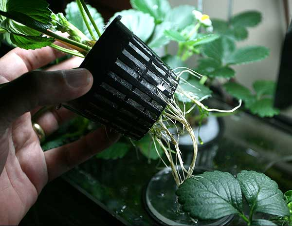 In the case of aeroponics, plant roots dangle down through the net pot and into air, where they are misted with nutrients. There is no other grow medium involved.